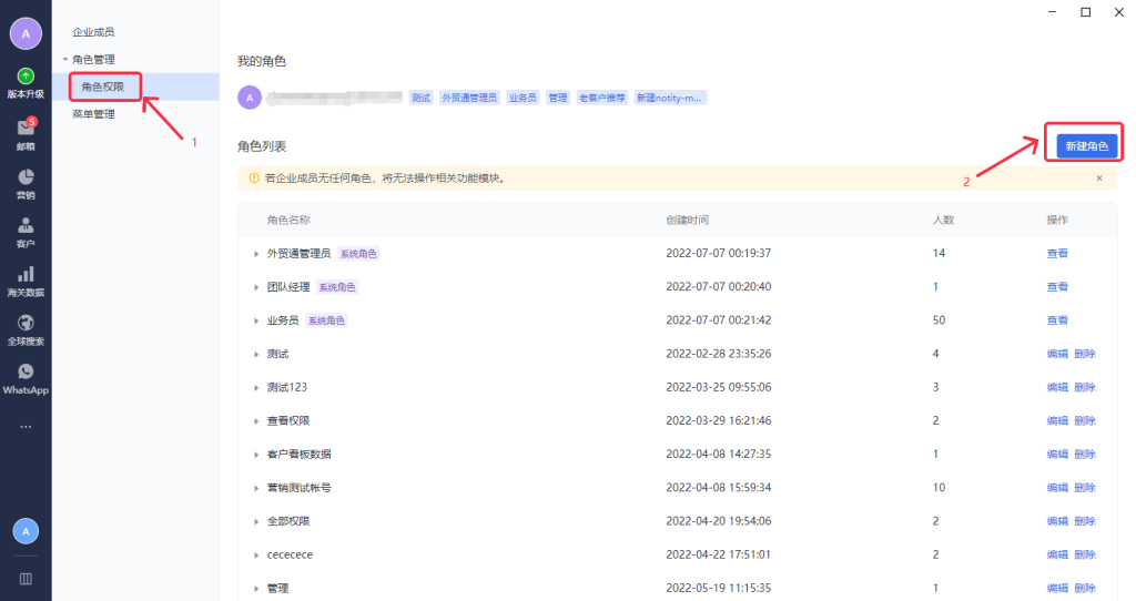 第二步:新建角色跳转界面后,对角色名称、添加成员、权限管理依次进行设置